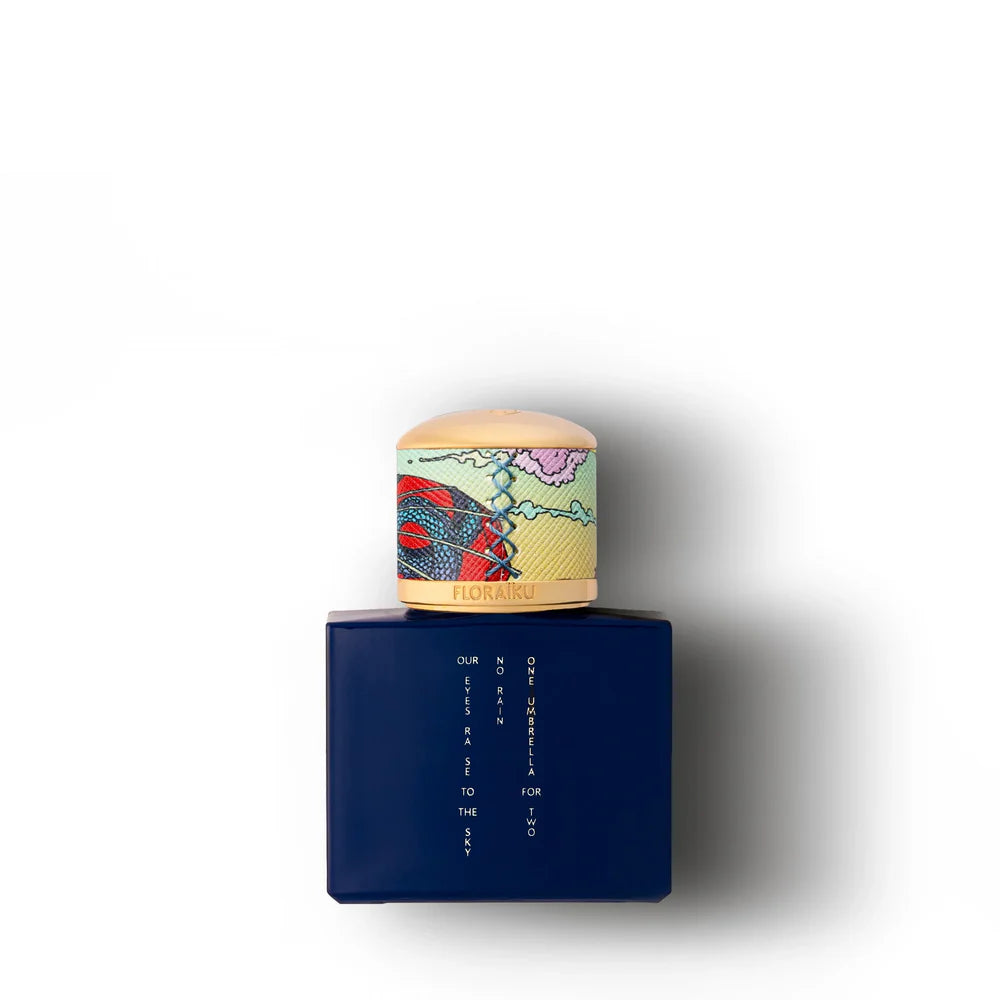 One Umbrella for Two, a sweet, fruity and gourmand Blackcurrant absolute encounters a Genmaicha Tea extract and a Cedarwood oilto form a perfect matching trio.